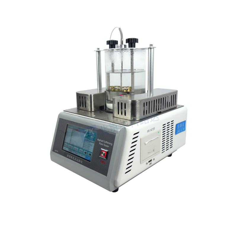 瀝青軟化點試驗儀,采用新設計的結構外觀和微電腦電路,具有體積小,故障率低,智能化程度高,使用簡單快捷等特點。本儀器采用了5寸觸摸屏顯示,程控磁力攪拌器,底部加熱板加熱,升溫線性好、 自動記錄試驗結果,僅需按下“開始試驗 ”鍵,試驗即可自動完成,結果準確可靠,可供公路、城建、石化、及科研院所從事瀝青性能檢測與研究之用。