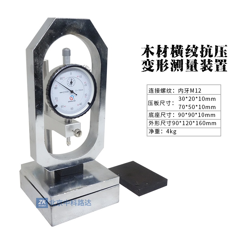 本裝置用于測定木材橫紋抗壓比例極限強度,包括橫紋全部抗壓比例極限強度和橫紋局部抗壓例極限強度,適用于木材無疵小試樣的橫紋抗壓比例極限強度的測定。符合GB∕T 1927.12-2021《無疵小試樣木材物理力學(xué)性質(zhì)試驗方法 第12部分:橫紋抗壓強度測定》的標(biāo)準(zhǔn)要求。