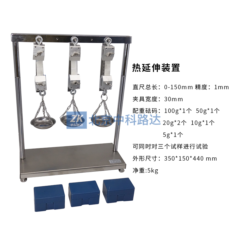 熱延伸裝置采用耐高溫材質(zhì)制造,用來(lái)檢測(cè)橡膠、塑料或類(lèi)似材料在高溫老化試驗(yàn)時(shí)的熱延伸性能。符合GB/T2951.12-2008《電纜和光纜絕緣和護(hù)套材料 通用試驗(yàn)方法 第12部分:熱老化試驗(yàn)方法》的標(biāo)準(zhǔn)要求。采用鋁合金波紋夾具,夾持方便牢固;不銹鋼直尺,刻度清晰;多種配重砝碼,自由組合。