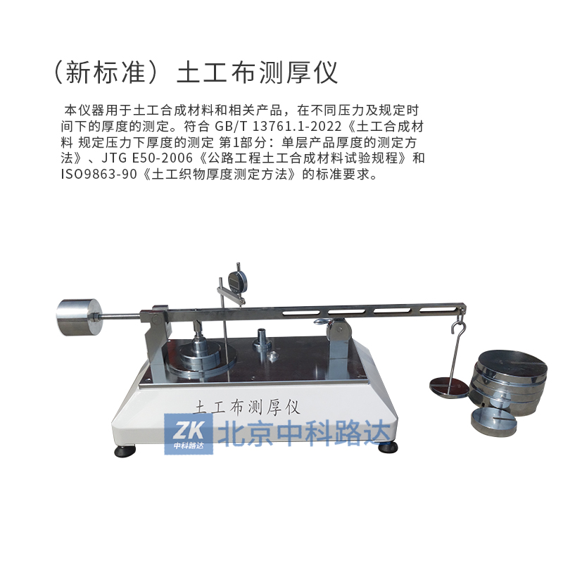 GB/T 13761.1-2022《土工合成材料 規(guī)定壓力下厚度的測定 第1部分:單層產(chǎn)品厚度的測定方法》、JTG E50-2006《公路工程土工合成材料試驗規(guī)程》和ISO9863-90《土工織物厚度測定方法》的標準要求。