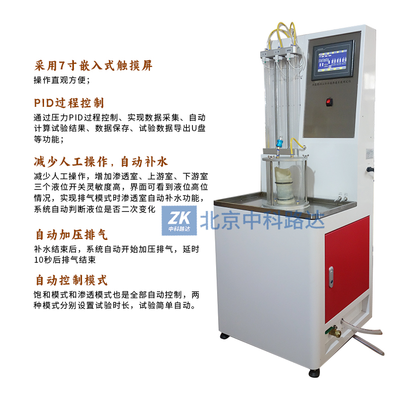 5、飽和模式和滲透模式也是全部自動控制,兩種模式分別設(shè)置試驗時長,試驗簡單自動。