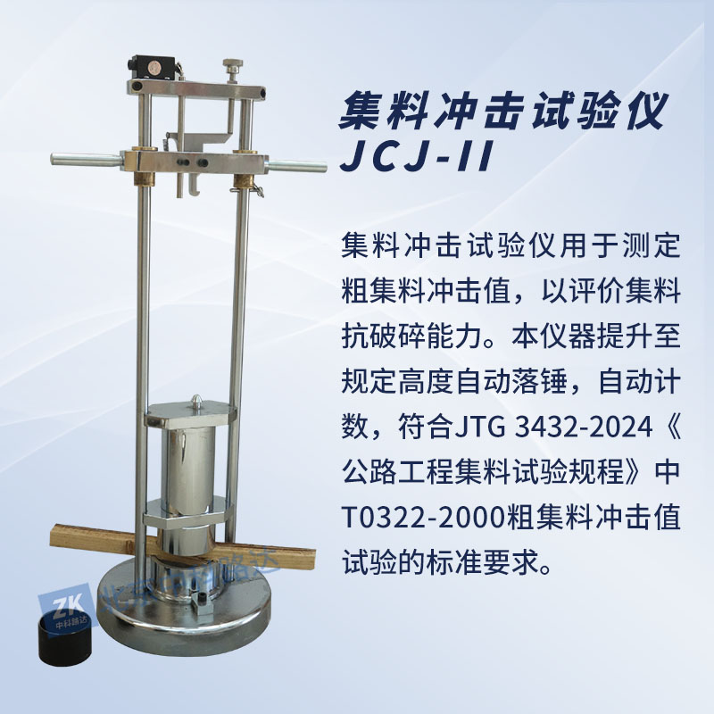 集料沖擊試驗(yàn)儀用于測定粗集料沖擊值,以評價(jià)集料抗破碎能力。本儀器提升至規(guī)定高度自動落錘,自動計(jì)數(shù),符合JTG 3432-2024《公路工程集料試驗(yàn)規(guī)程》中T0322-2000粗集料沖擊值試驗(yàn)的標(biāo)準(zhǔn)要求。