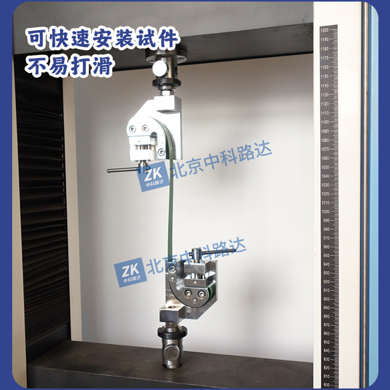 打包帶拉伸夾具配合試驗(yàn)機(jī)用于打包帶等條狀非金屬材料的拉伸強(qiáng)度試驗(yàn)??煽焖侔惭b試件,不易打滑。