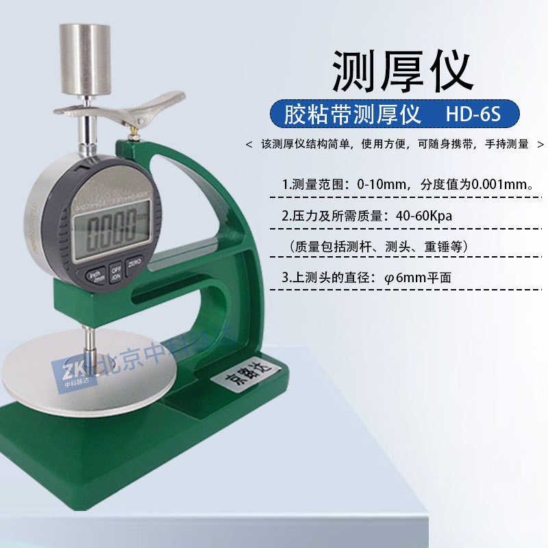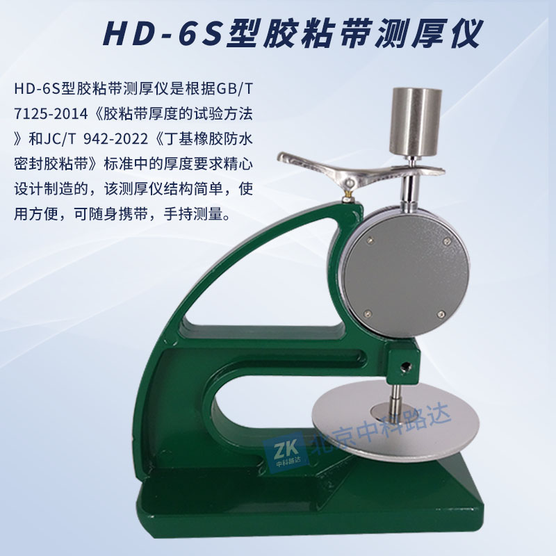 HD-6S型膠粘帶測(cè)厚儀是根據(jù)GB/T 7125-2014《膠粘帶厚度的試驗(yàn)方法》和JC/T 942-2022《丁基橡膠防水密封膠粘帶》標(biāo)準(zhǔn)中的厚度要求精心設(shè)計(jì)制造的,該測(cè)厚儀結(jié)構(gòu)簡(jiǎn)單,使用方便,可隨身攜帶,手持測(cè)量。