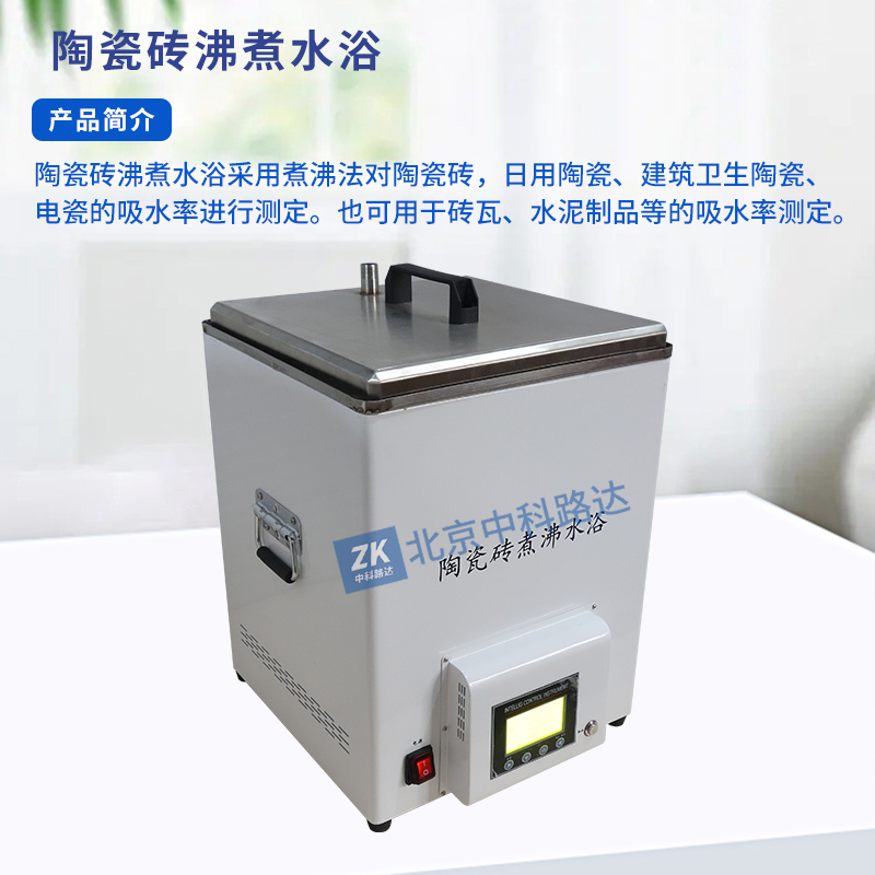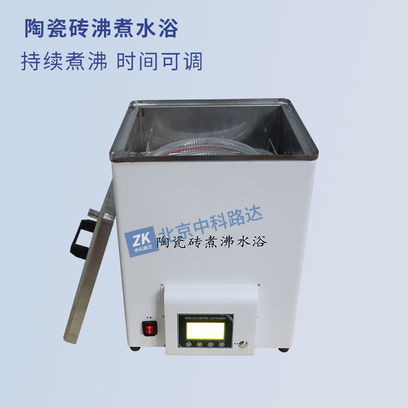 陶瓷磚沸煮水浴采用煮沸法對陶瓷磚,日用陶瓷、建筑衛(wèi)生陶瓷、電瓷的吸水率進行測定。也可用于磚瓦、水泥制品等的吸水率測定。主控芯片采用微處理器,全過程自動化控制,也可以手動設(shè)置操作,操作簡單。主機采用不銹鋼內(nèi)膽及優(yōu)質(zhì)保溫棉制造,具有水位設(shè)置,自動補水,持續(xù)煮沸,防止干燒等功能,并可任意設(shè)置溫度,恒溫時間,水位高度。滿足GB/T 3810.3-2016《陶瓷磚試驗方法第3部分 :吸水率、顯氣孔率、表觀相對密度和容重的測定》、GB/T 3299-2011《日用陶瓷器吸水率測定方法》等標準要求。