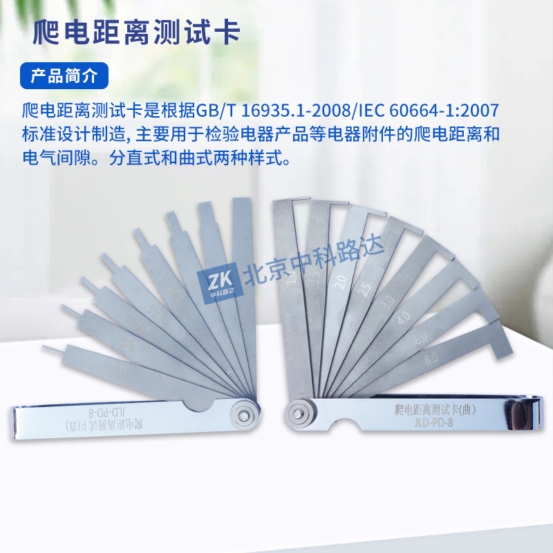 爬電距離測試卡是根據(jù)GB/T 16935.1-2008/IEC 60664-1:2007標(biāo)準(zhǔn)設(shè)計制造, 主要用于檢驗(yàn)電器產(chǎn)品等電器附件的爬電距離和電氣間隙。分直式和曲式兩種樣式。