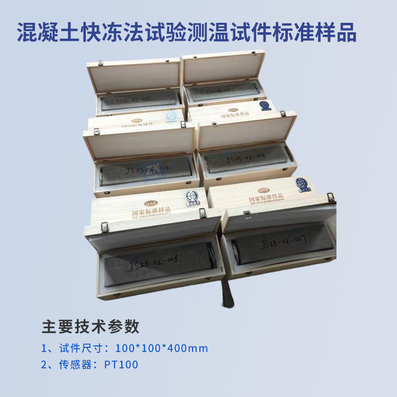 混凝土快凍法試驗(yàn)測(cè)溫試件標(biāo)準(zhǔn)樣品符合GB/T50082-2024 《混凝土長(zhǎng)期性能和耐久性能試驗(yàn)方法標(biāo)準(zhǔn)》的標(biāo)準(zhǔn)要求。