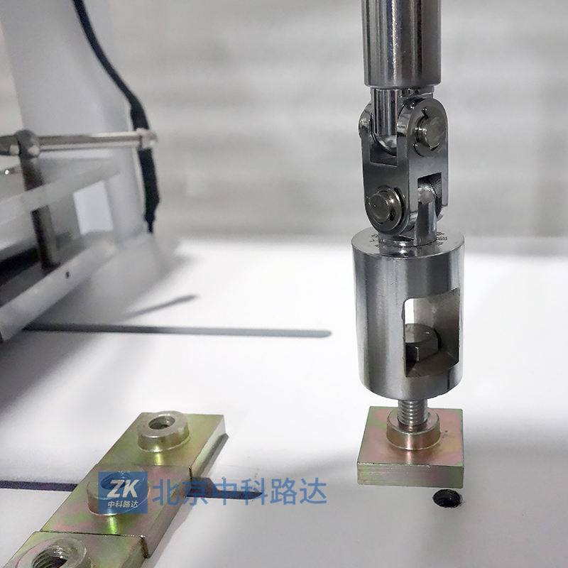 5將試件基板固定在測試儀底板上,如實時力值顯示非零,待顯示穩(wěn)定后,確認測試頭不受力時,把數(shù)值清零將萬向卡頭扶正,測試頭移動到試件附近(移動時卡頭不要碰撞試件,以免損壞),平移測試頭,使試件上丁字頭移入測試頭,測試頭與試件中心偏差應(yīng)盡量小。準備工作完畢。