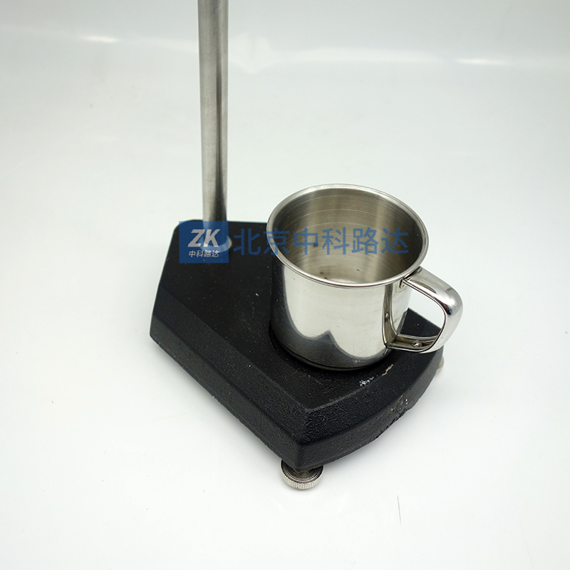 涂-4粘度杯計置放在一個能調節(jié)水平的平臺上的十字支架上,十字架的橫臂上附近有圓形水泡,調節(jié)平臺的水平螺栓使這水泡氣孔居中為止,涂-4粘度杯置放在橫臂的圓環(huán)上。