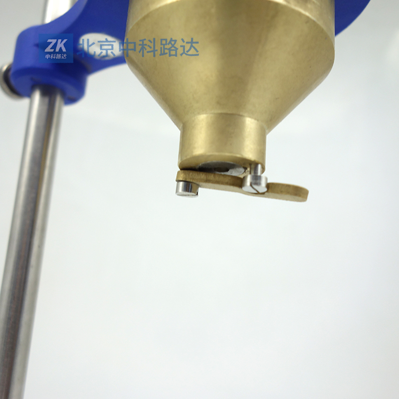 4、將試液注入粘度計時,同時用一手指堵住流出孔,注滿后用一金屬或玻璃平板在杯上刮平,將多余試液刮入粘度計邊緣凹槽內,放好承接杯。