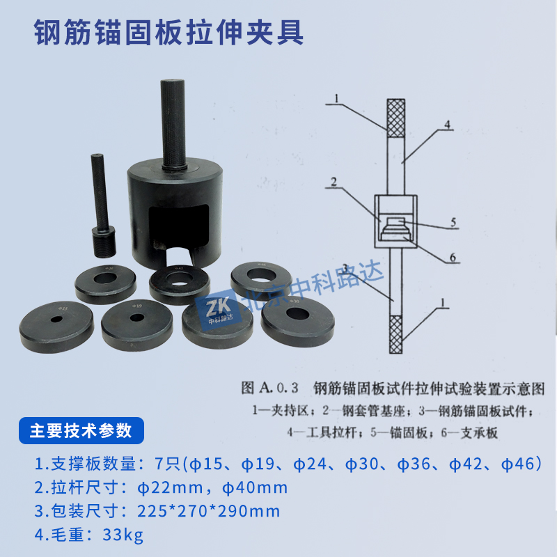 鋼筋錨固板拉伸夾具用于鋼筋錨固板試件拉伸試驗,符合JGJ256-2011《鋼筋錨固板應用技術規(guī)程》