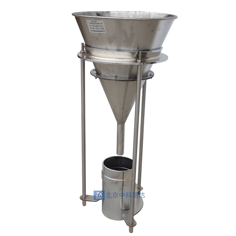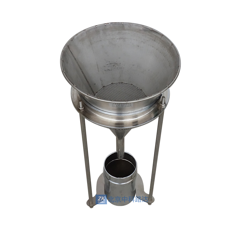 儀器由1.錐形篩。2.三腳支架。3.測(cè)量容器(上部是延伸筒、下部是容重桶,其容量是1升)三部分組成。