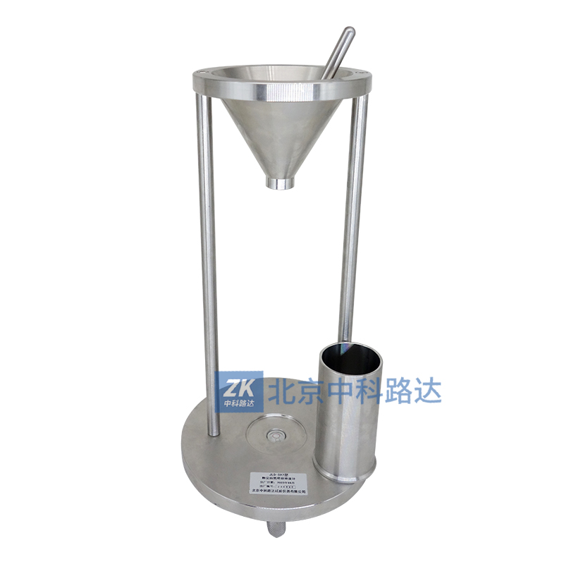2、用塞棒塞住漏斗流出口。將塵樣裝入盛樣量筒,用刮片刮平后倒入漏斗中。