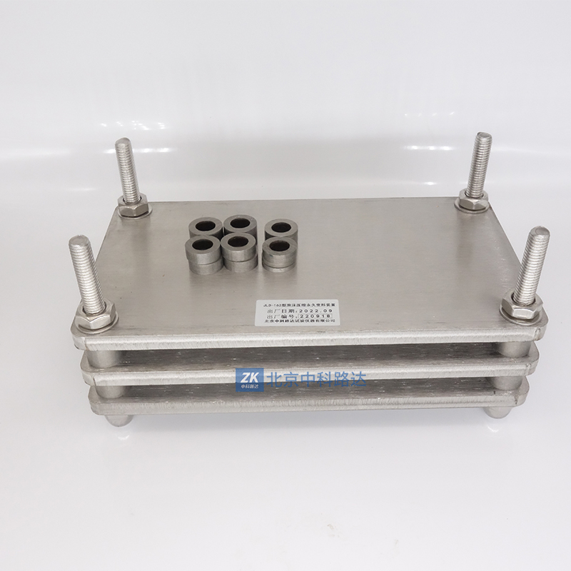 泡沫壓縮永久變形器由平行鋼板、限制器和緊固件組成,符合GB/T 6669-2008 ISO 1856:2000 《軟質(zhì)泡沫聚合材料壓縮永久變形的測定》的要求。在規(guī)定的溫度下,使泡沫材料試樣在一定的時間內(nèi)維持恒定的變形,待試樣恢復(fù)一段時間后,觀察形變對試驗厚度的影響。用試樣的初始厚度與最終厚度之差與試樣初始厚度之比的百分率表示該材料的壓縮永久變形。