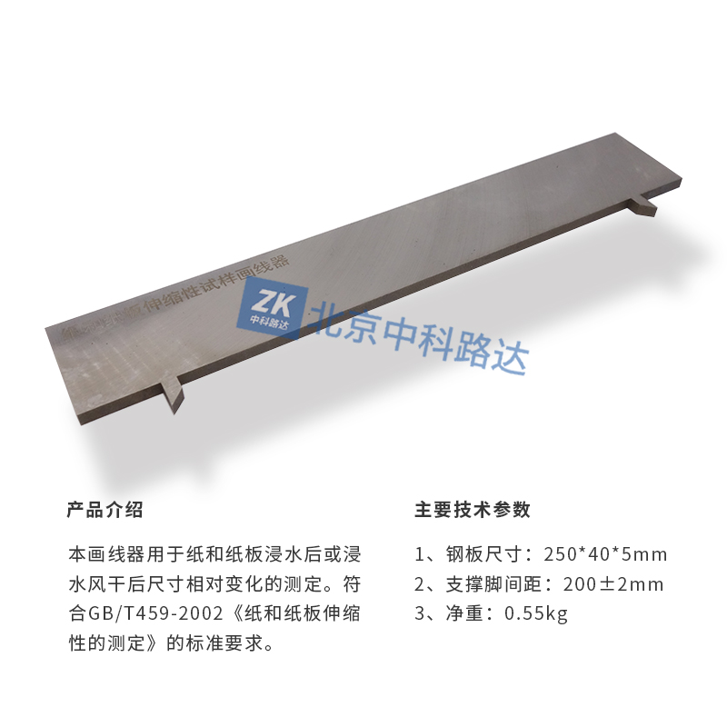 本畫(huà)線器用于紙和紙板浸水后或浸水風(fēng)干后尺寸相對(duì)變化的測(cè)定。符合GB/T459-2002《紙和紙板伸縮性的測(cè)定》的標(biāo)準(zhǔn)要求。...