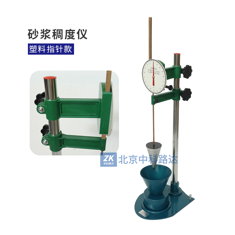 用來測定砂漿的流動性(一般流動性又稱為稠度)。砂漿的稠度是用一定幾何形狀和重量的標準圓錐體以其自身的重量自由地沉入砂漿混合物中沉度的厘米數(shù)來表示。