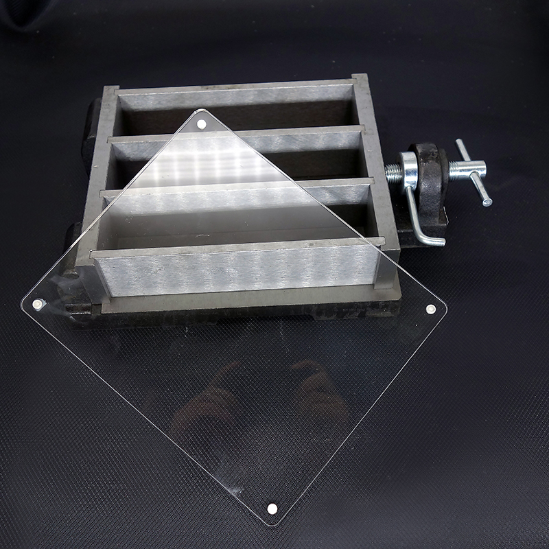 在試模上蓋塊玻璃板,也可用相似尺寸的鋼板或不滲水的,和水泥沒有反應(yīng)的材料制成的板。蓋板不應(yīng)與水泥膠砂接觸,蓋板與試模之間的距離應(yīng)控制在2mm-3mm之間。為了安全,玻璃板應(yīng)有磨邊。
