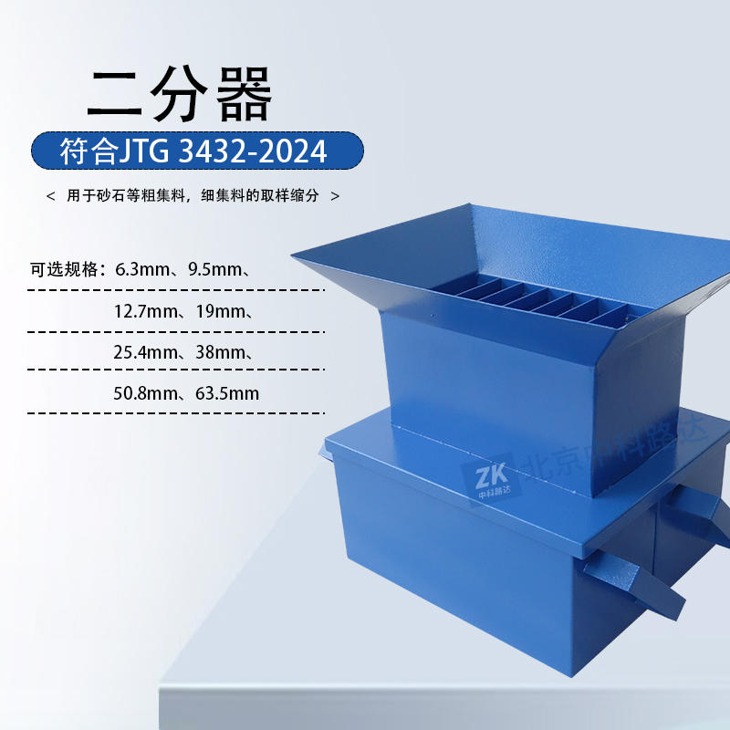 分料器為槽格式二分器。有偶數(shù)個(gè)等寬的槽格,每個(gè)分料器配備2個(gè)接料斗,可用于砂石等粗集料,細(xì)集料的取樣縮分。符合JTG 3432-2024《公路工程集料試驗(yàn)規(guī)程》標(biāo)準(zhǔn)要求。也用于煤、礦樣或其它不均勻粒狀物料的縮分取樣。...