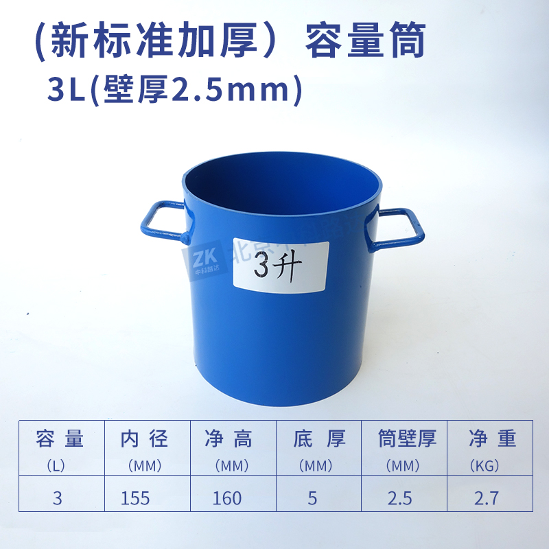 容量筒用于測定粗集料的松散堆積密度、振實堆積密度和搗實堆積密度以及空隙率。符合JTG 3432-2024《公路工程集料試驗規(guī)程》T0309-2005粗集料堆積密度及空隙率試驗的標準要求。