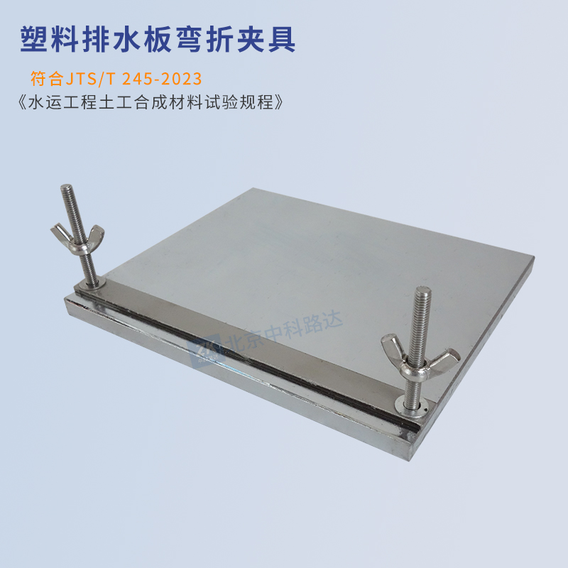 塑料排水板彎折夾具用于測定塑料排水板芯板、整體式塑料排水板的抗彎折性能。符合JTS/T 245-2023《水運工程土工合成材料試驗規(guī)程》中塑料排水板抗彎性能測定的標準要求。