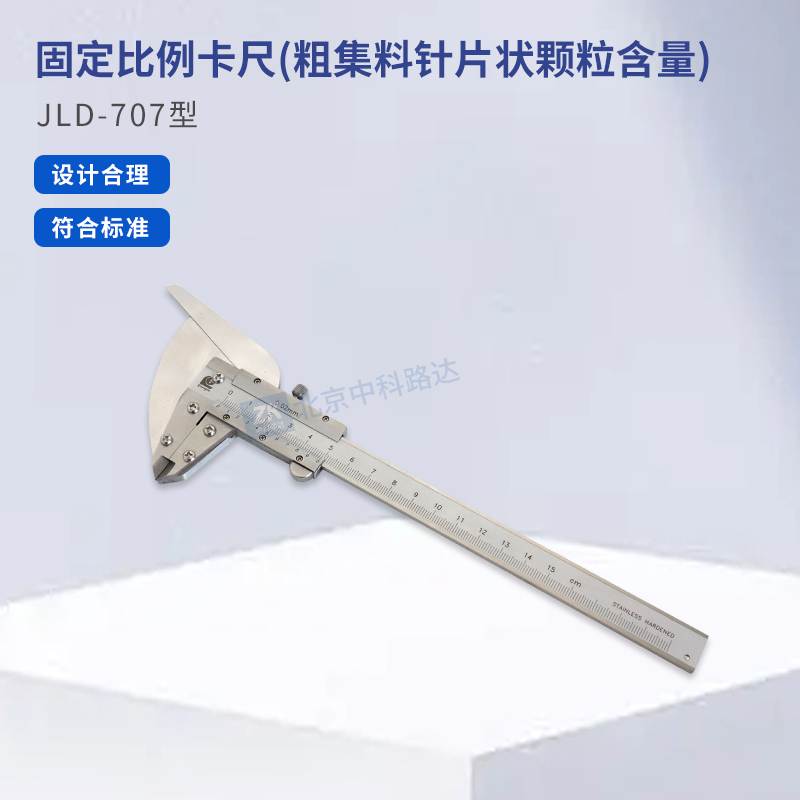 固定比例卡尺適用于卡尺法測定粗集料的針片狀顆粒含量,是指用最大長度與最小厚度之比大于3的顆粒。符合JTG 3432-2024《公路工程集料試驗規(guī)程》中T 0312-2005粗集料針片狀顆粒含量試驗(卡尺法)的標準要求。