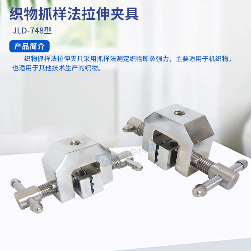 織物抓樣法拉伸夾具采用抓樣法測定織物斷裂強力,主要適用于機織物,也適用于其他技術(shù)生產(chǎn)的織物。
